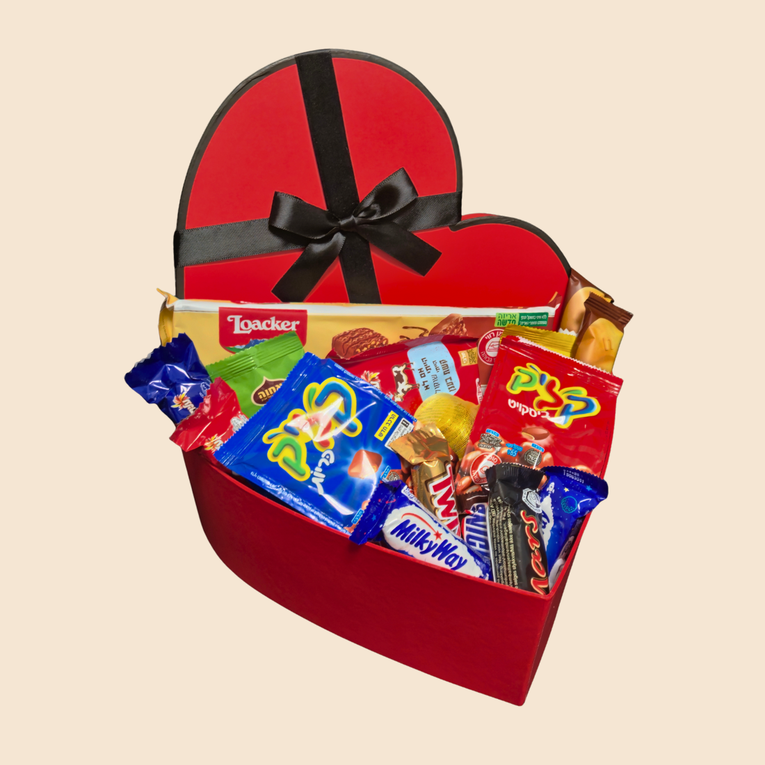 המארז מגיע ארוז ומעוצב בתוך קופסת לב מהודרת, עטוף בצלופן וקשור בסרט יוקרתי – מוכן להעניק מיידית את הרגש ואת החיוך.