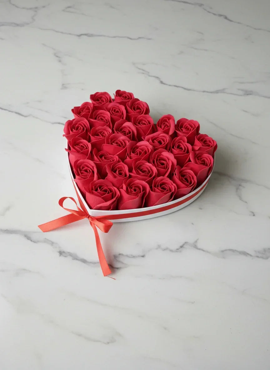 🌹 מגש לב פרחי סבון קלאסי – מתנת אהבה נצחית